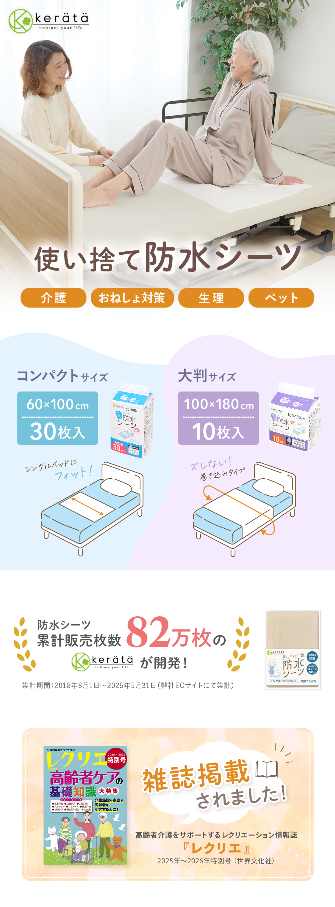 (ケラッタ) 使い捨て 防水シーツ 介護 部分用 60×100cm 30枚 100×180cm 10枚 介護用品 介護シーツ 吸水シート ベッド 大判 シングル 赤ちゃん ベビー ペット