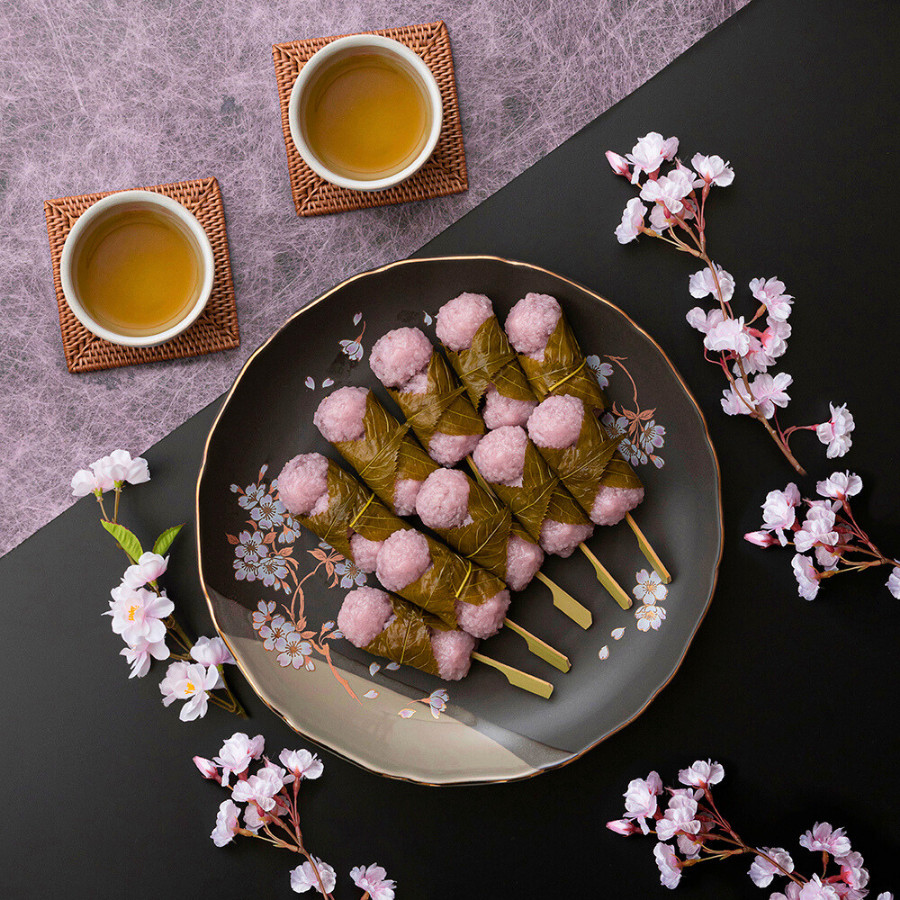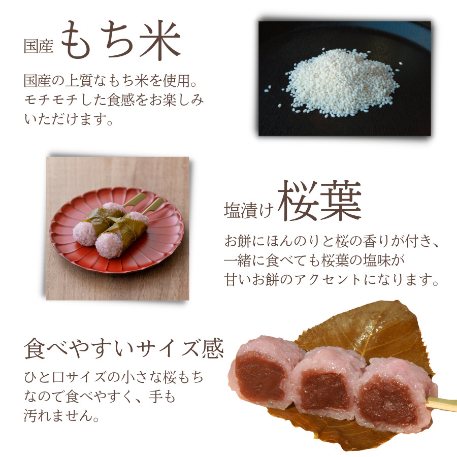 もち米(国産)、上赤生餡、砂糖、麦芽糖、塩漬桜葉、/トレハロース、着色料(クチナシ色素、パプリカ色素)