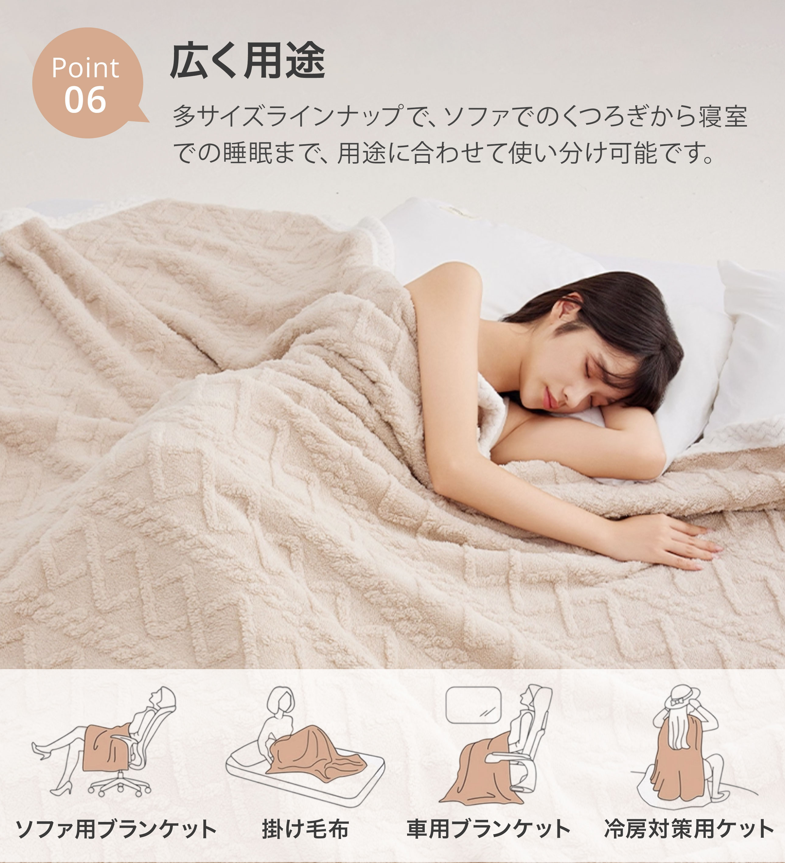 使い方いろいろ:ベッド・ソファ・車内・オフィス・お昼寝・ひざ掛けまで幅広く活躍。家族でシェアにも◎