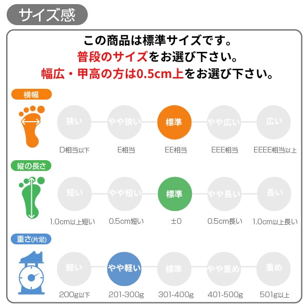 甲高、幅広の方→「0.5cm大きめ」