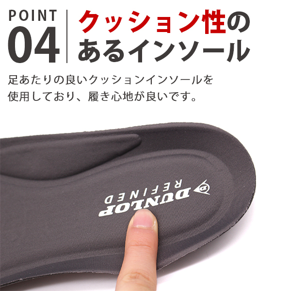 足あたりの良いクッションインソールを使用しており、履き心地が良いです。