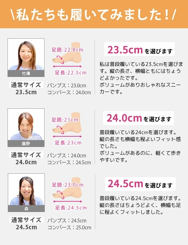 取り扱いサイズ:23cm 23.5cm 24cm 24.5cm