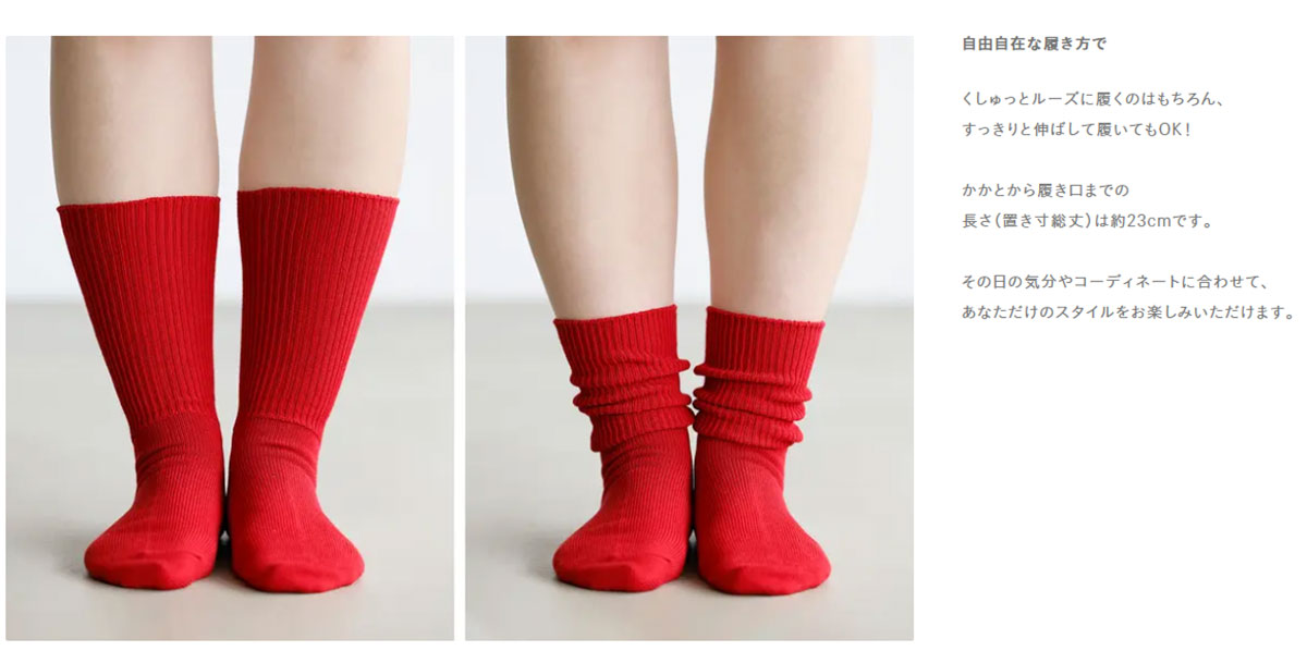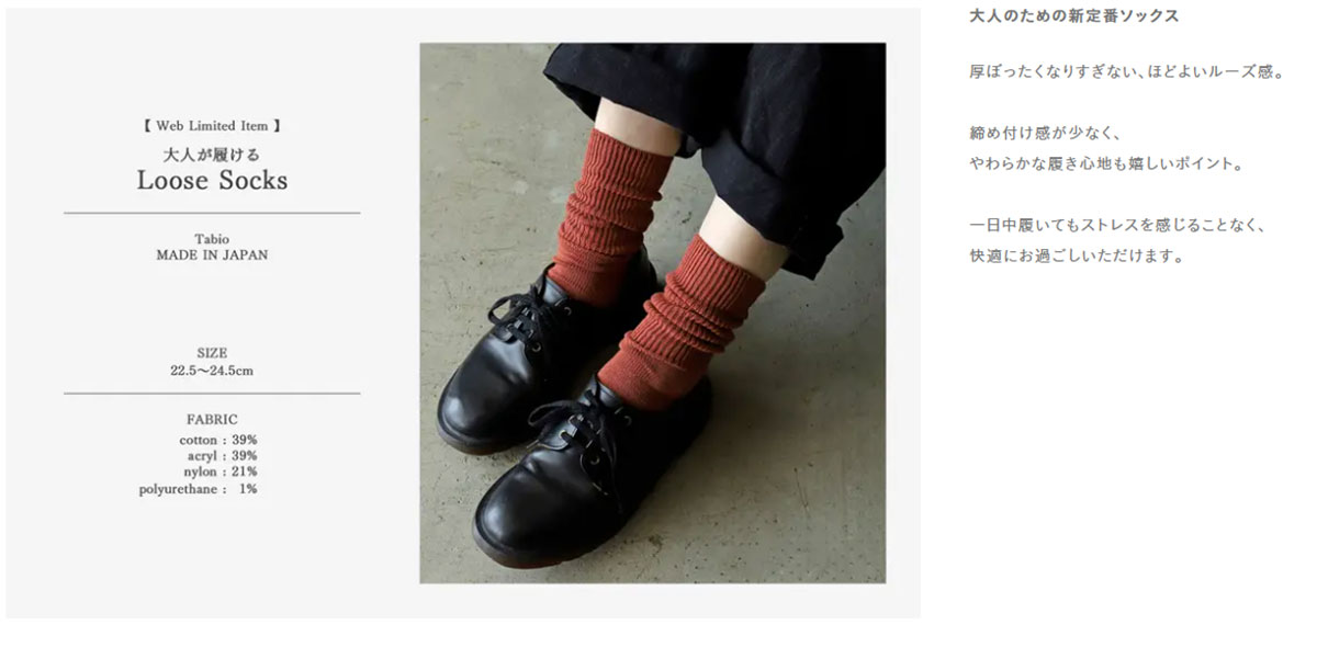 厚ぼったくならず、適度にボリューム感を出してくれる大人のルーズソックスです。