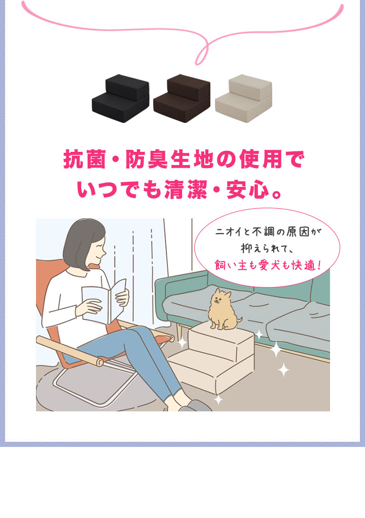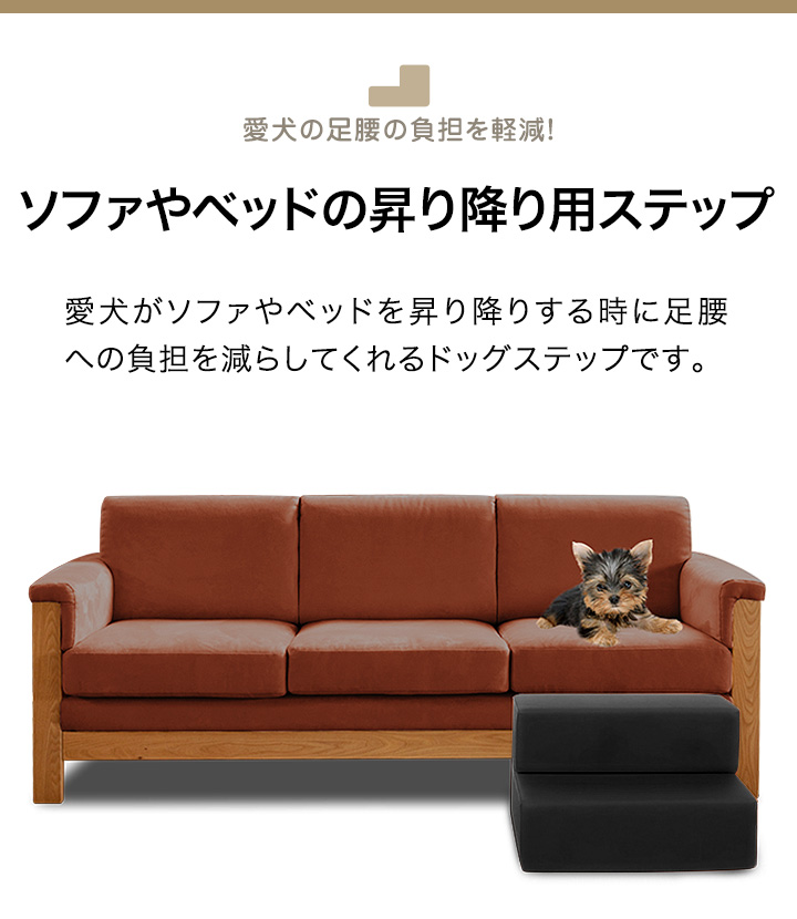 愛犬がソファやベッドを昇り降りする時に足腰への負担を減らしてくれるドッグステップです。