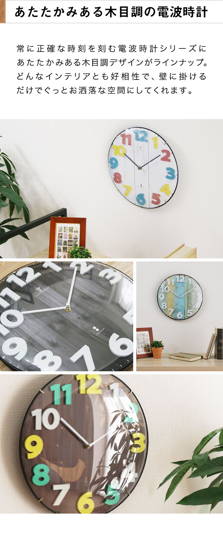 常に正確な時刻を刻む電波時計シリーズにあたたかみある木目調デザインがラインナップ。