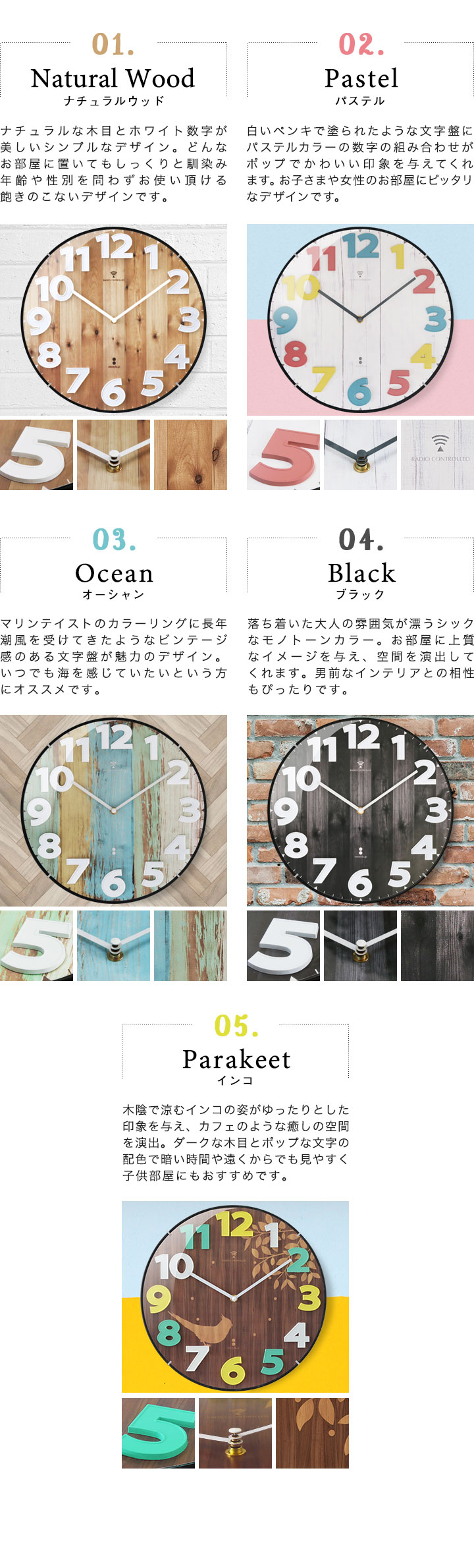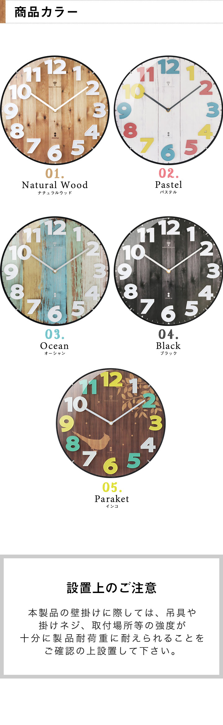 | カラー: [01]【ナチュラルウッド】 [02]【パステル】 [03]【オーシャン】 [04]【ブラック】 [05]【インコ】 |