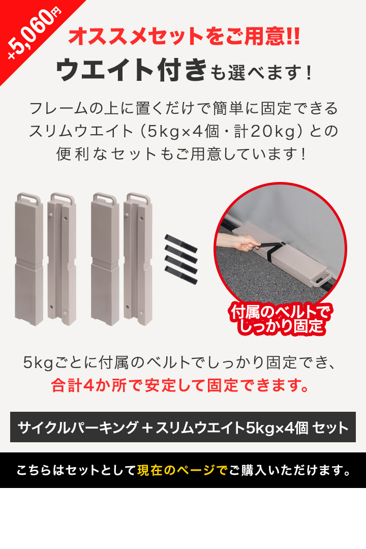 | 重量: ・スリムウエイト5kg本体:(約)5kg ※1個あたり ・面ファスナーベルト:(約)8g ※1本あたり |