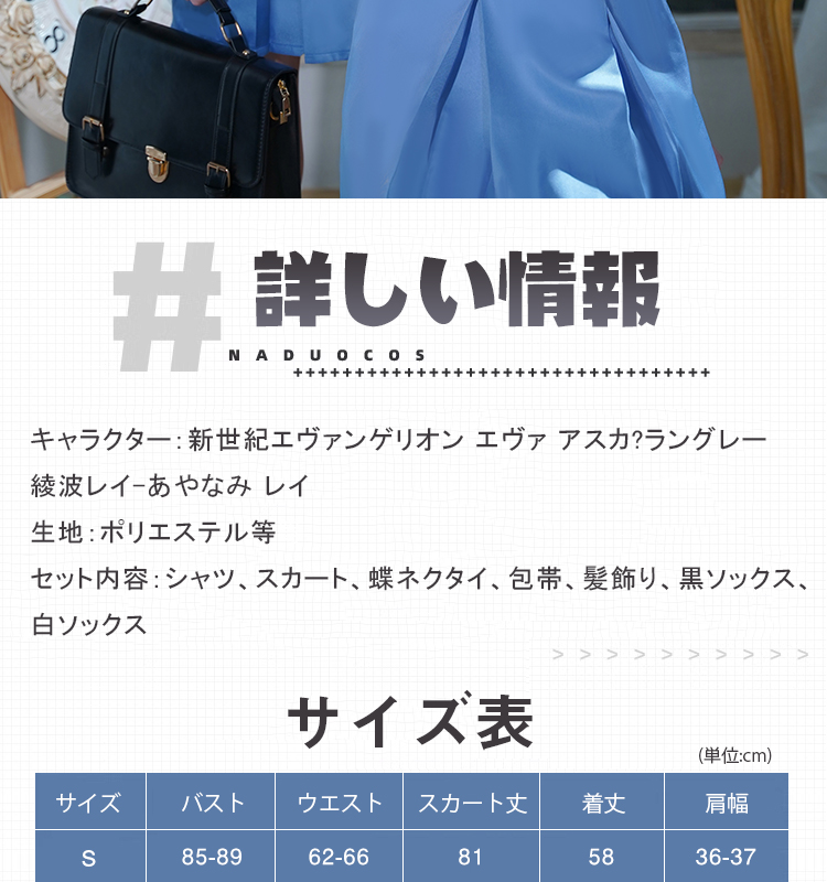 新世紀エヴァンゲリオン アスカ/綾波レイ 学校制服コスチューム エヴァ コスプレ衣装