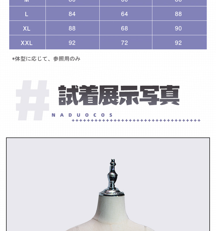 ※動く為に仕上がりサイズはヌードサイズより3〜5CMゆとりが持っております。予めご了承ください。