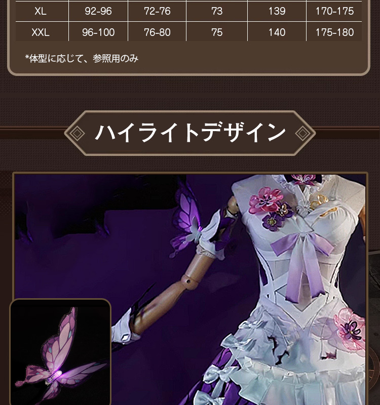 ※動く為に仕上がりサイズはヌードサイズより3〜5CMゆとりが持っております。予めご了承ください。