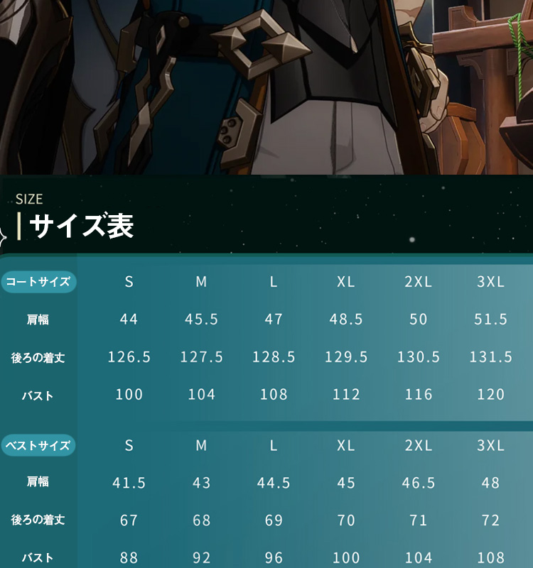 ※動く為に仕上がりサイズはヌードサイズより3〜5CMゆとりが持っております。予めご了承ください。