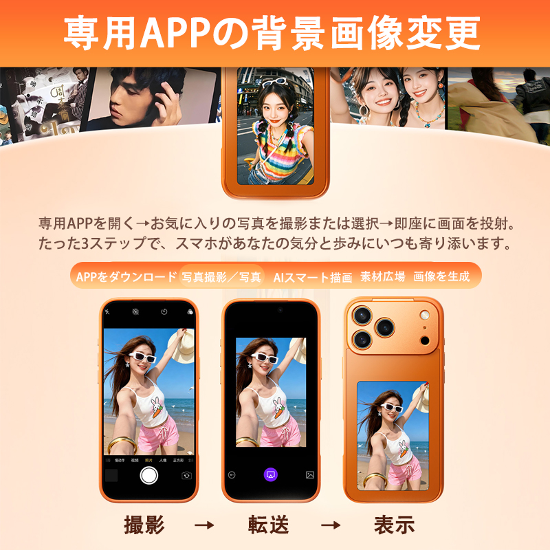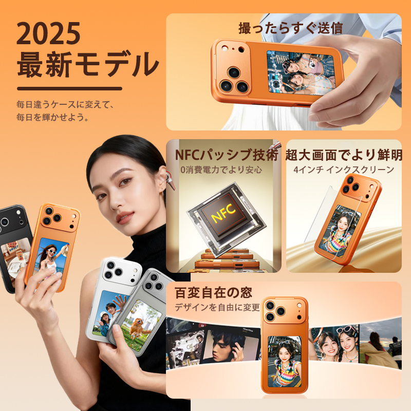 E-InkスマホケースNFC機能付きスマートフォンケース インクスクリーン 充電不要 写真 テキスト DIYスクリーン携帯カバー iPhone 17 17 pro max保護ケース