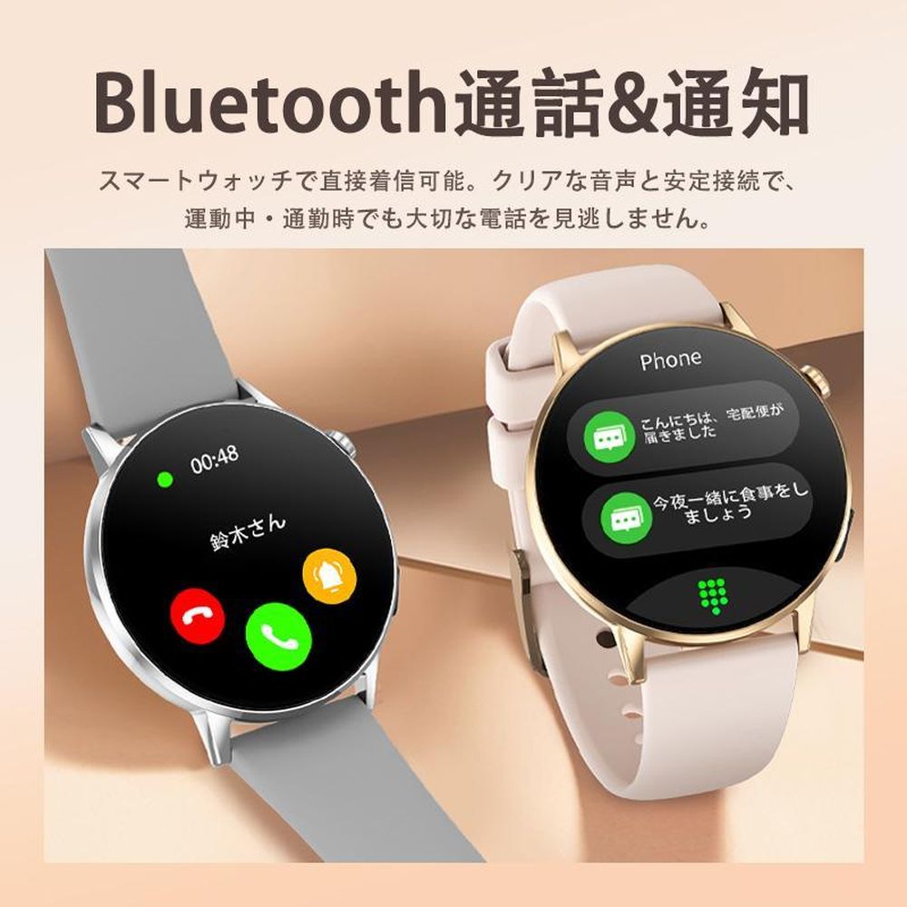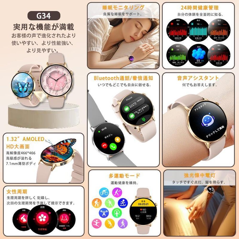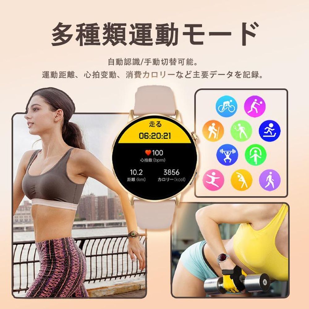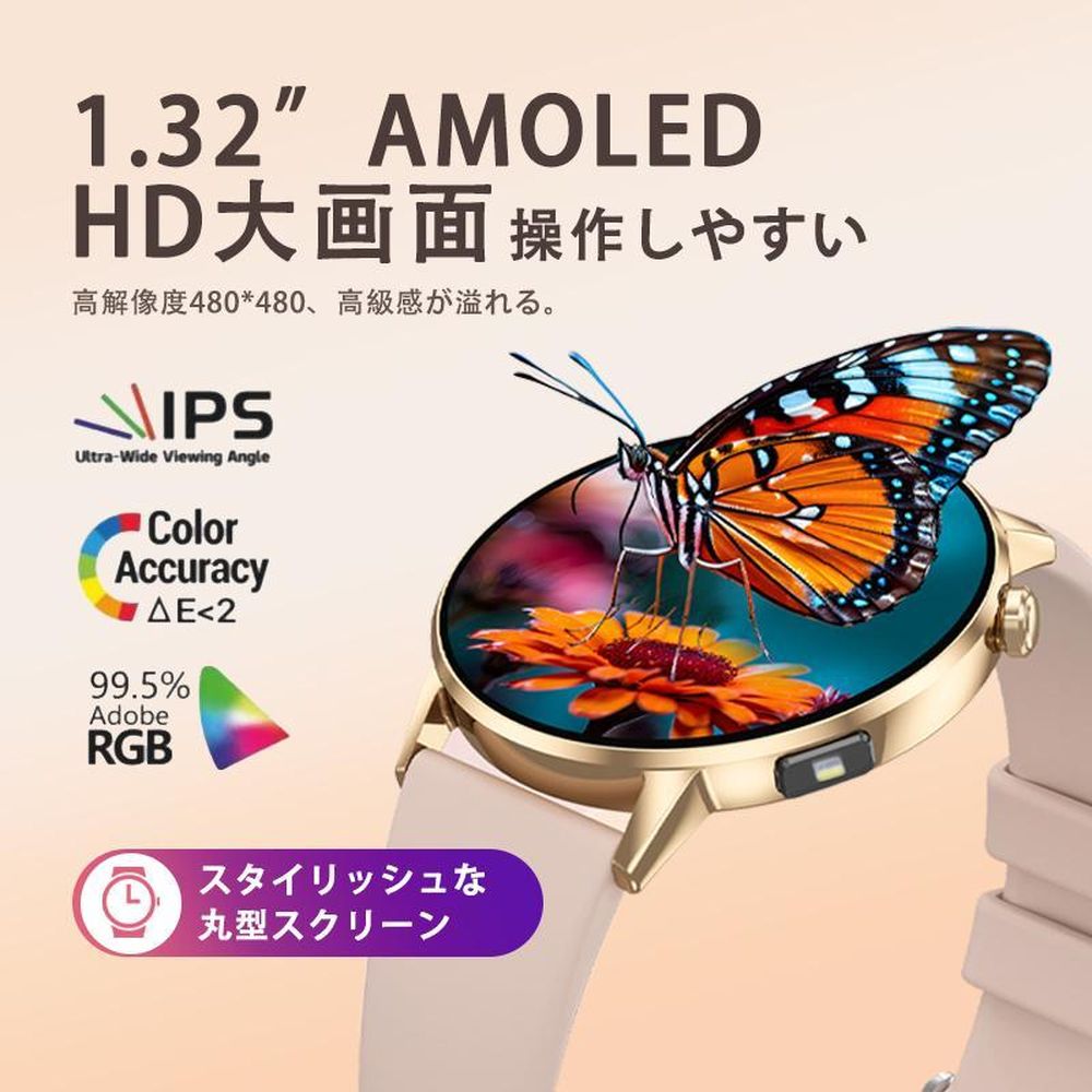 【DIY文字盤&多機能を搭載】- スマートウォッチの文字盤は固定ではありません。多くの文字盤から選べるだけではなく、お好みによって自分が好きな写真を文字盤に設定できます。 460* 460の高解像度と1.32インチのフルタッチスクリーンで、細かい文字でもはっきりと表示されます。他にも音楽コントロール、携帯を探す、腕上げ点灯、タイマー、ストップウォッチ、データ同期、女性生理管理など便利な機能を備えているので、男性でも女性でも使いやすいです!!生活、仕事の効率をさらに上げ、日常生活もより便利にしてくれます。