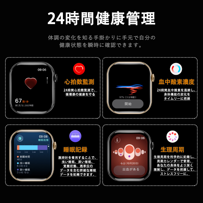 【24 時間体調を見守る!1.85 インチ大画面スマートウォッチ】日常・トレーニング・安心ライフに欠かせない多機能デバイス