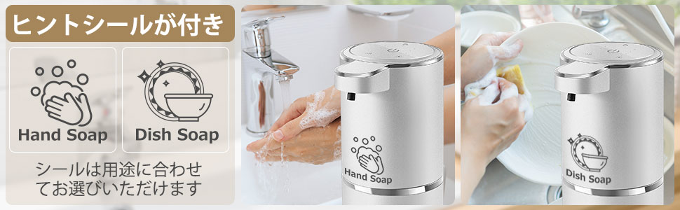 液体洗剤の場合は、直接ディスペンサーに入れて使用してください。キッチンやバスルームに最適なこのディスペンサーは、使い勝手が良く、衛生的で省スペースなデザインが特長です。お子様から大人まで、家族全員が快適に利用できる便利なアイテムです。2種類のシールが付属しており、使用シーンに合わせて適切なシールを選ぶことができます。