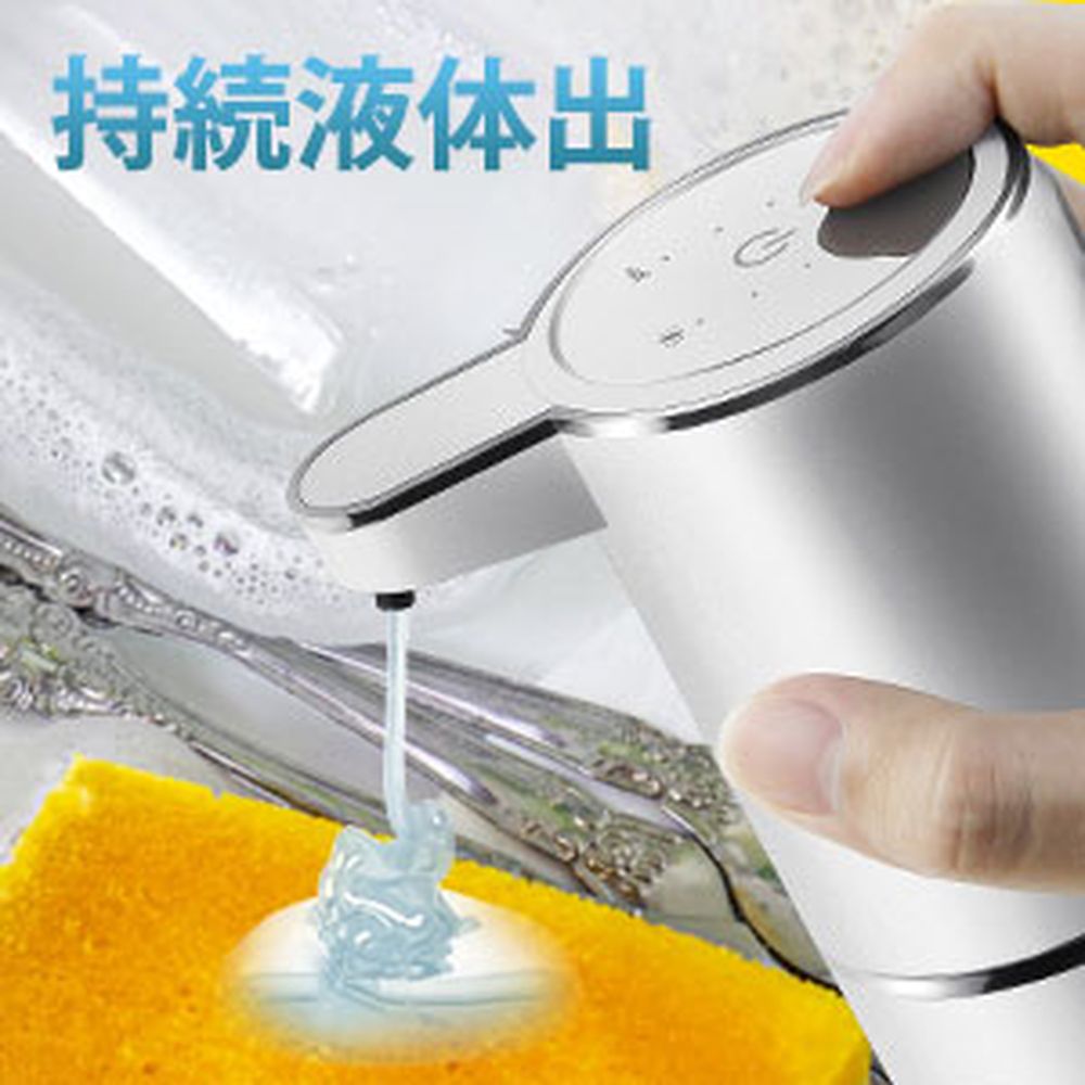 自動ディスペンサーは新機能が追加され、進化しました!「持続出液」ボタンを押し続ける限り、最大で連続して15秒間の洗剤が出るです。長押しで手間をかけることなく、持続的な洗剤を手に入れることができます。大量の食器、コンロ、ダイニングテーブル、バーベキューグリルなどを効率的に洗浄するのに最適です。家庭や公共の場所でも、当社のディスペンサーは理想的な選択肢となります。衛生的で便利な手洗い体験をお楽しみください。