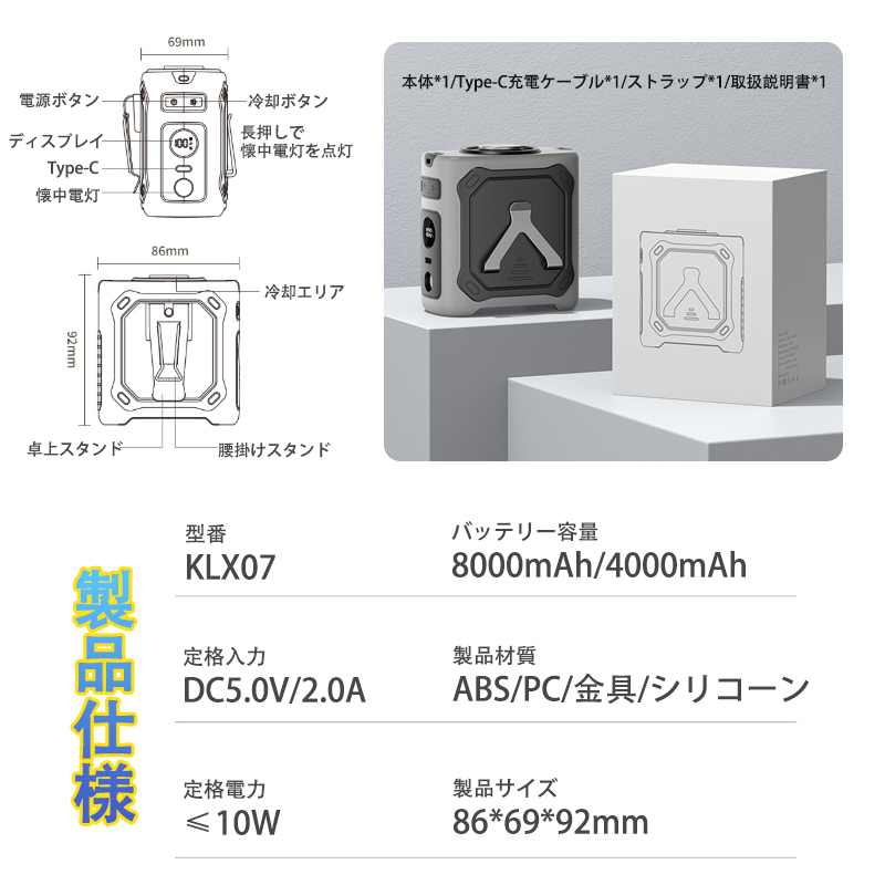 <font size="12" >KLX07 掛け式ウエストクーラーファン 使用説明書</font>