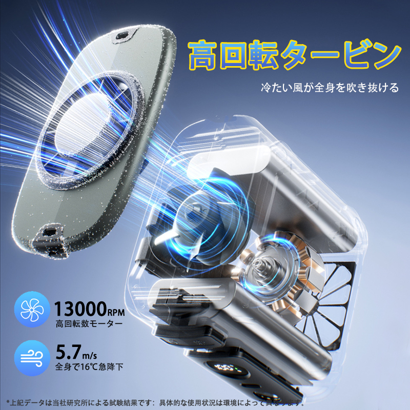 (3) 注意:冷感機能はファンを起動した状態でのみ使用可能です。冷感1档で約8.3時間、2档で約7.5時間稼働します。