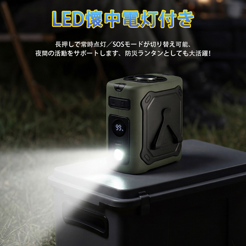 懐中電灯&SOS ライト搭載、多機能でアウトドアに最適