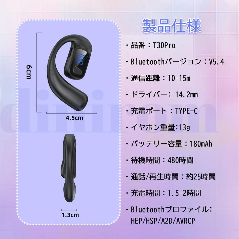 ワイヤレスイヤホン bluetooth5.4 iPhone ブルートゥースイヤホン 耳掛け式 超軽量13g 耳が痛くない 片耳 両耳 HiFi 高音質 防水 長持ち ios android 爆買