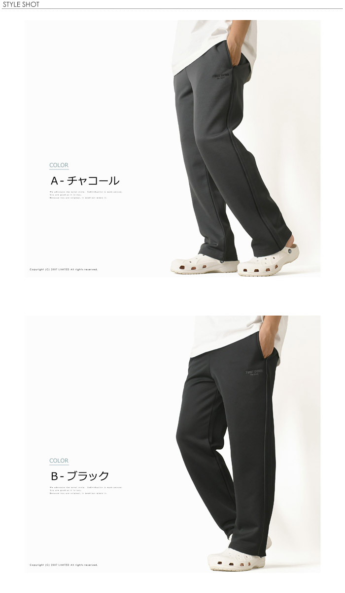 ファーストダウン 裏起毛 トラックパンツ メンズ ブリスター素材 ストレート ジャージ ワンポイントロゴ 刺繍 あったか シンプル 【RI2-1476】 送料無料 通販A3