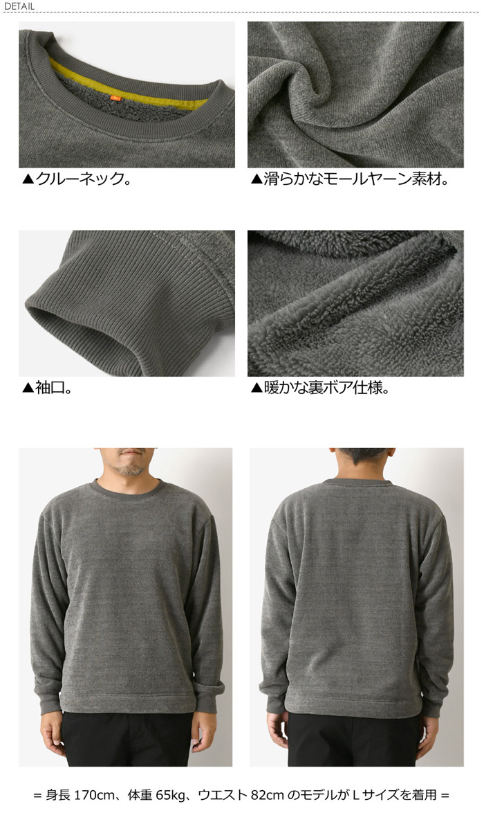 着るホカロン クルーネック トレーナー メンズ レディース 裏ボア あったか 裏起毛 スウェット 冬 部屋着 ルームウェア 防寒 【RL2-1477】 送料無料 通販A3