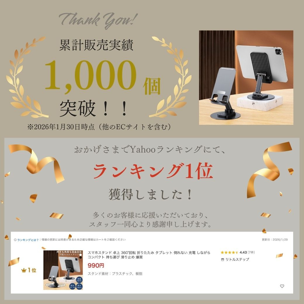 スマホスタンド 卓上 360°回転 折りたたみ タブレット 倒れない 充電 しながら コンパクト 持ち運び 滑り止め 爆買