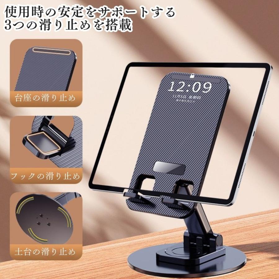 スマホスタンド 卓上 折りたたみ 360°回転 タブレットスタンド 倒れない 充電 しながら おしゃれ コンパクト 持ち運び 滑り止め iPhone アンドロイド Android iPad レシピスタンド 動画視聴