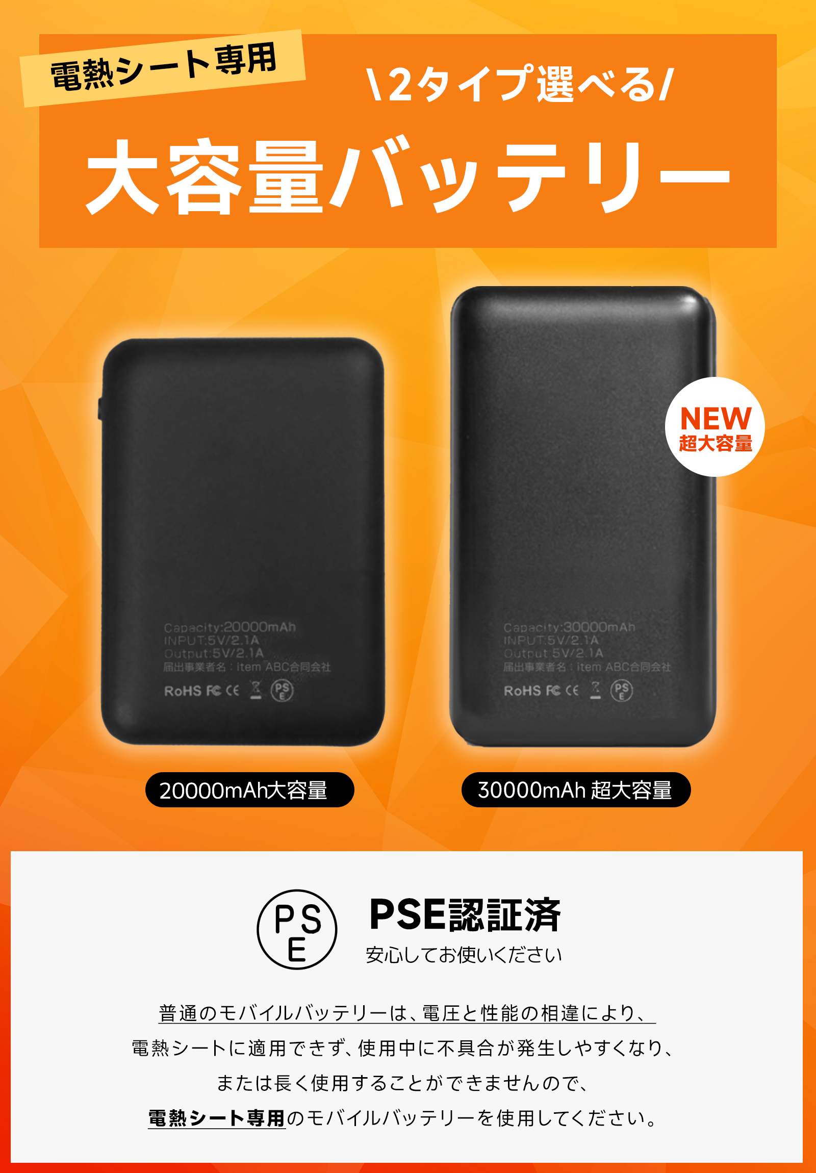 電熱ベスト バッテリー モバイルバッテリー 10000mAh 20000mAh 30000mAh PSE認証済 大容量 ワークマン USB Type-C MircoUSB 過熱 過充電 保護機能