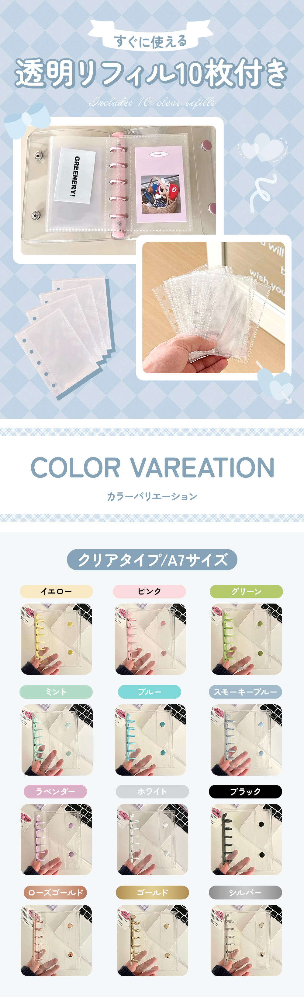 【クーポンで880円】 SNSで話題 シール帳 透明クリアバインダー A7/M5 選べるサイズ リフィル10枚付き 防水・防汚 推し活 ステッカー収納 5穴 ミニバインダー
