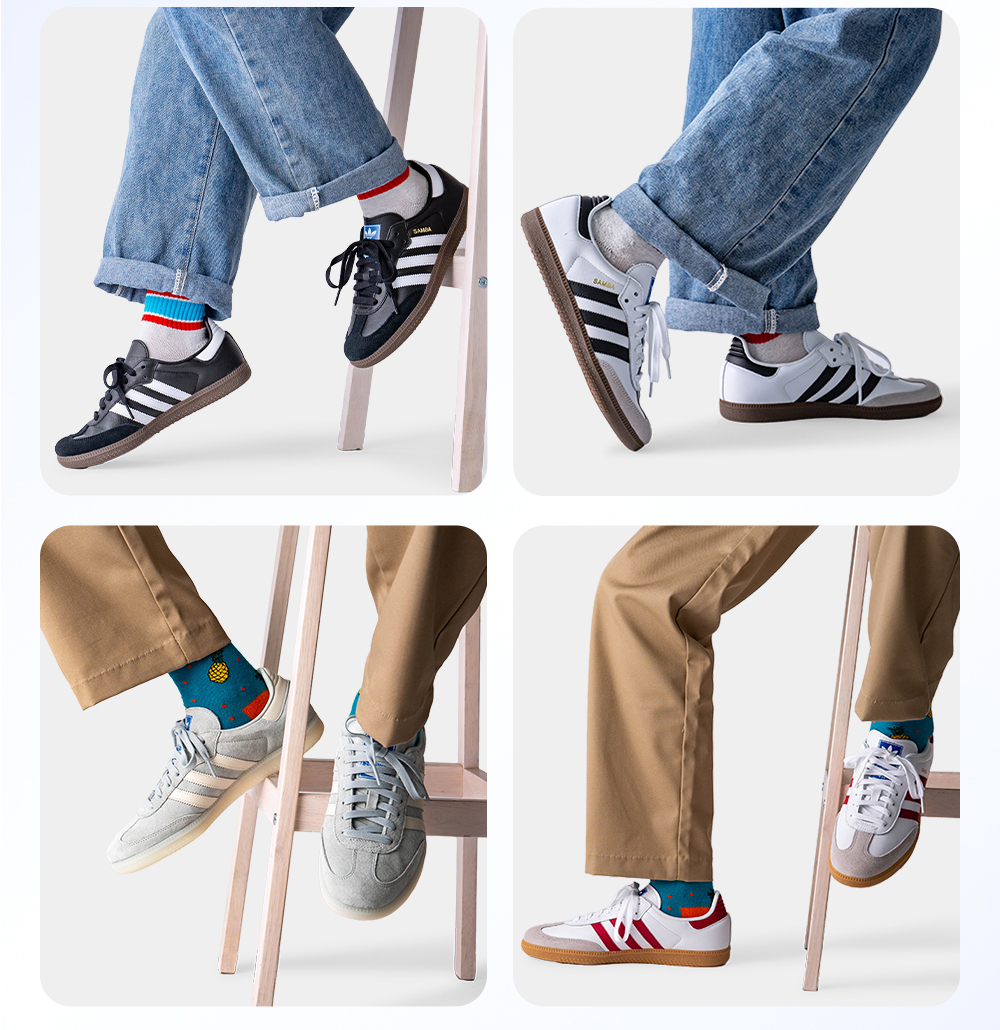 SAMBA OGのクラシックなデザインは時代を超えて愛され続け、ヴィンテージやレトロなスタイルが注目を集めている今、その名は世界中に知られています。