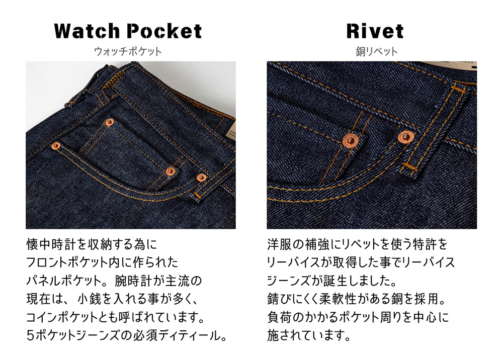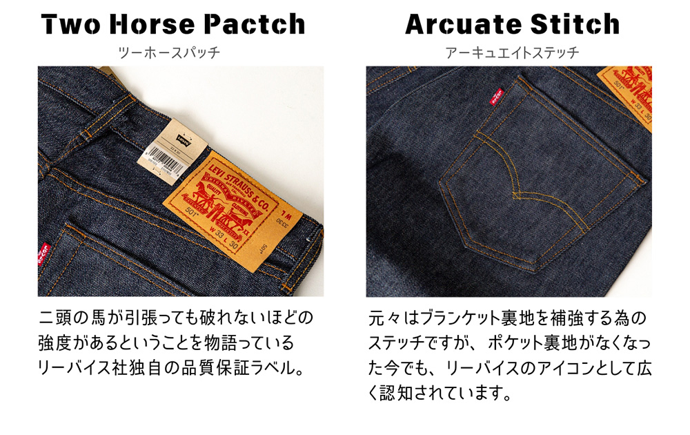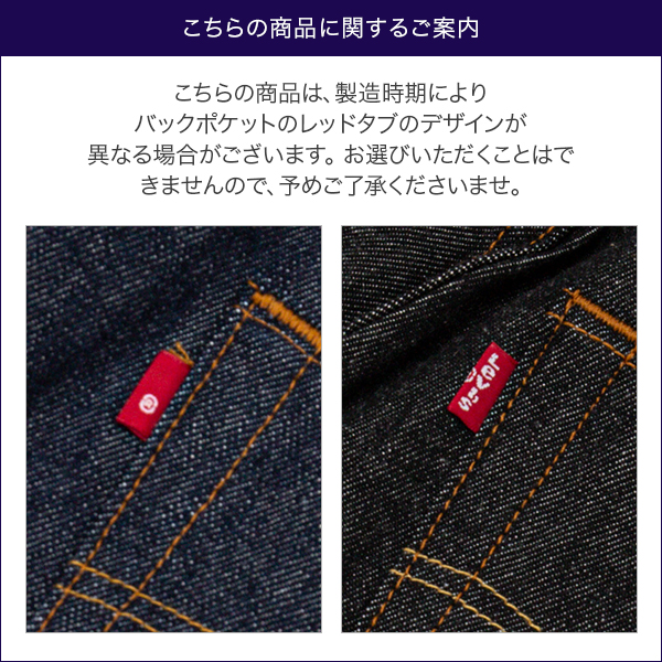 ・製造時期により後ろ右ポケットのレッドタブなど、細かい仕様のデザインが異なる場合がございます。仕様をお選びいただくことはできませんので、予め了承ください。