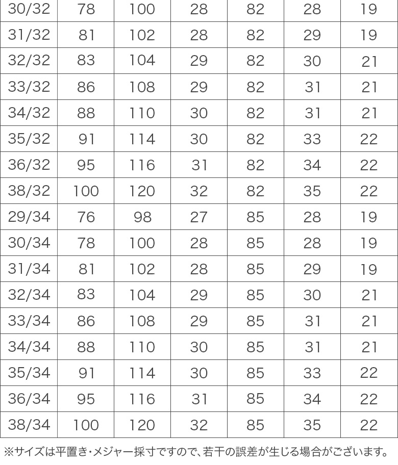 ※ページ内記載のサイズ表をご覧ください。