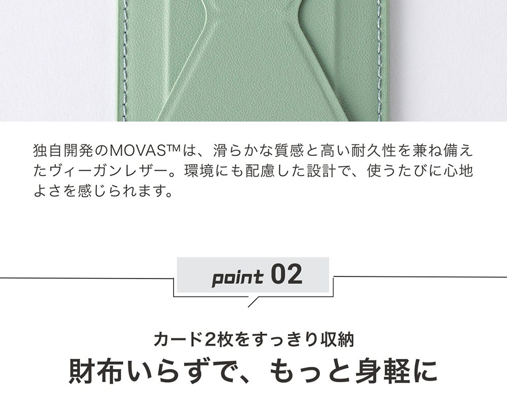 1枚で「グリップ」「ウォレット」「スタンド」の3役をこなす、究極のミニマリスト向けアクセサリーです。
