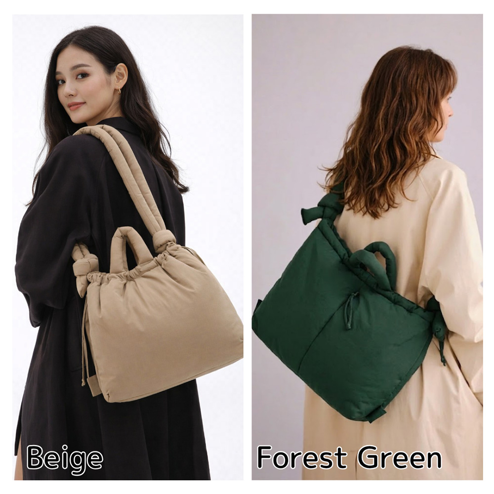 スペイン発のバッグブランド、OLEND(オレンド)のアイコン的存在である「ONA SOFT BAG」。中綿入りのパフィーな質感と、17インチのノートPCまで入る大容量サイズが特徴です。撥水加工を施した軽量ナイロンを使用しており、雨の日も安心。最大の魅力は、ストラップを調節することで、ショルダー、ハンドバッグ、バックパックとして使える3WAY仕様です。マグネット開閉のメイン収納に加え、背面には便利なファスナーポケット付き。通勤・通学から旅行まで、オンオフ問わず活躍する実力派バッグです。