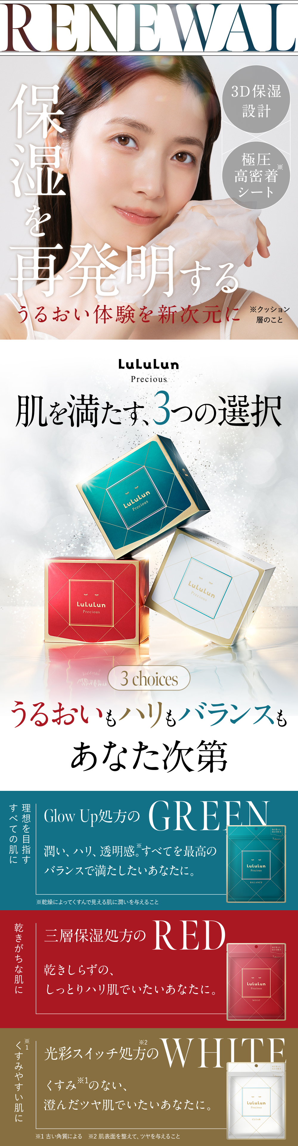 LuLuLun プレシャス GREEN RED WHITE Presious 日本製 保湿 化粧水 乾燥 美容 コスメ スキンケア 美容液 クレンジング 保湿ケア Made in Japan 透明感 うるおい るるるん rururun lululun公式 公式 フェイスマスク ルルルン フェイスマスクルルルン パック マスク シートマスク マスクパック マスクシート フェイスパック シートマスクパック シートマスク・パック マスクシートパック フェイスマスクシート ふぇいすますく しーとますく ふぇいすぱっく 保湿美容液 保湿化粧水 保湿ローション