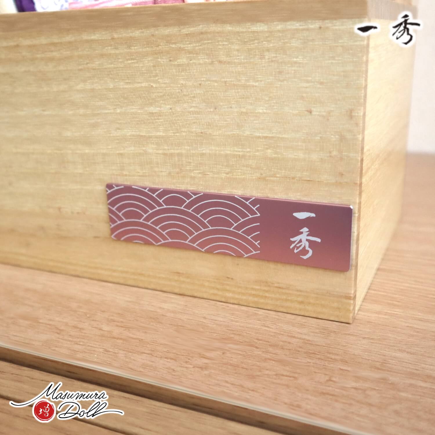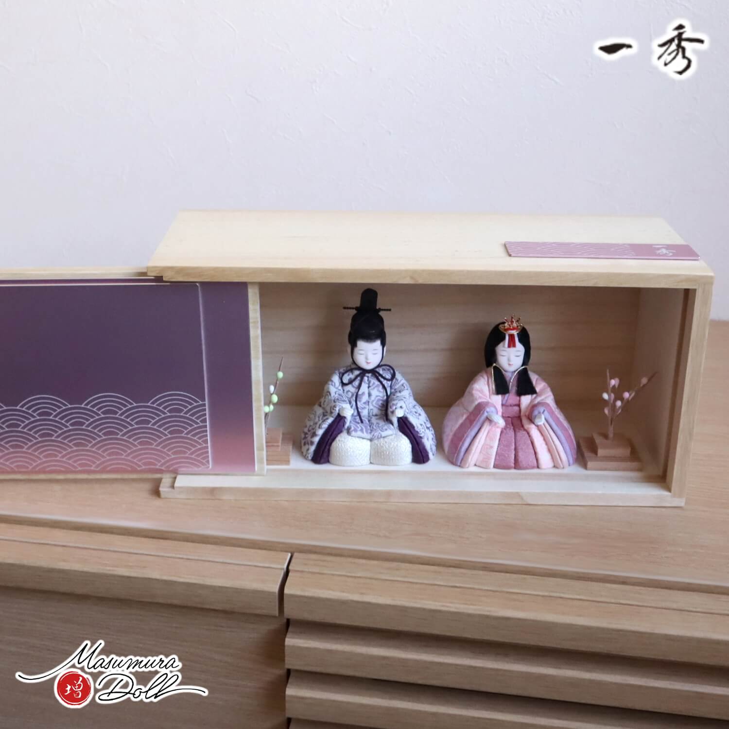 雛人形 コンパクト モダン おしゃれ インテリア ひな人形 おひなさま 一秀 木目込 衝立ピンク青海波文様収納箱 かわいい お雛様 雛 親王飾り 増村人形店 MMN0303