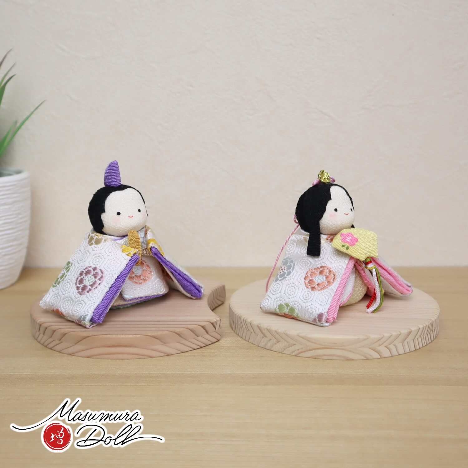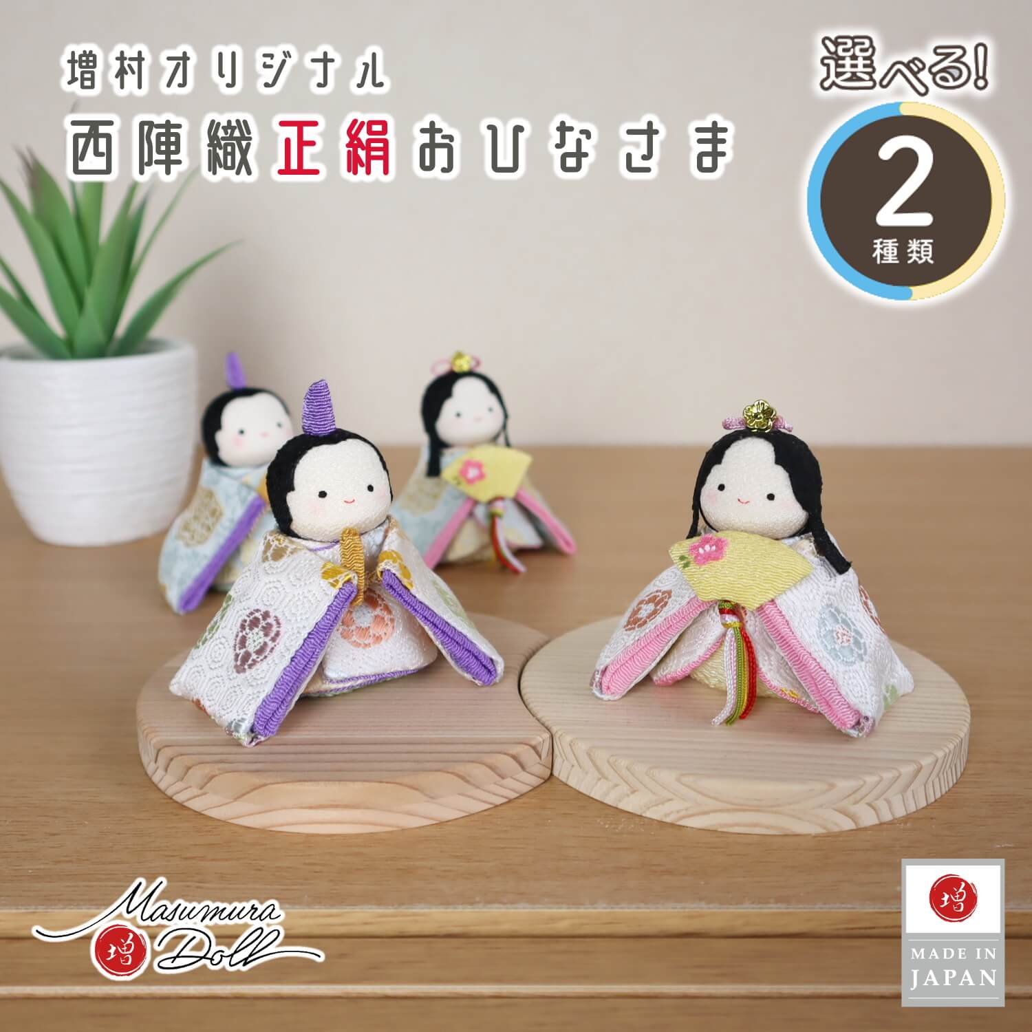 雛人形 コンパクト ★ モダン おしゃれ インテリア ひな人形 おひなさま 選べる 2種類 白地色々丸/水色唐花 京都ちりめん細工 別注 かわいい お雛様 雛 親王飾り 増村人形店 MMN0390