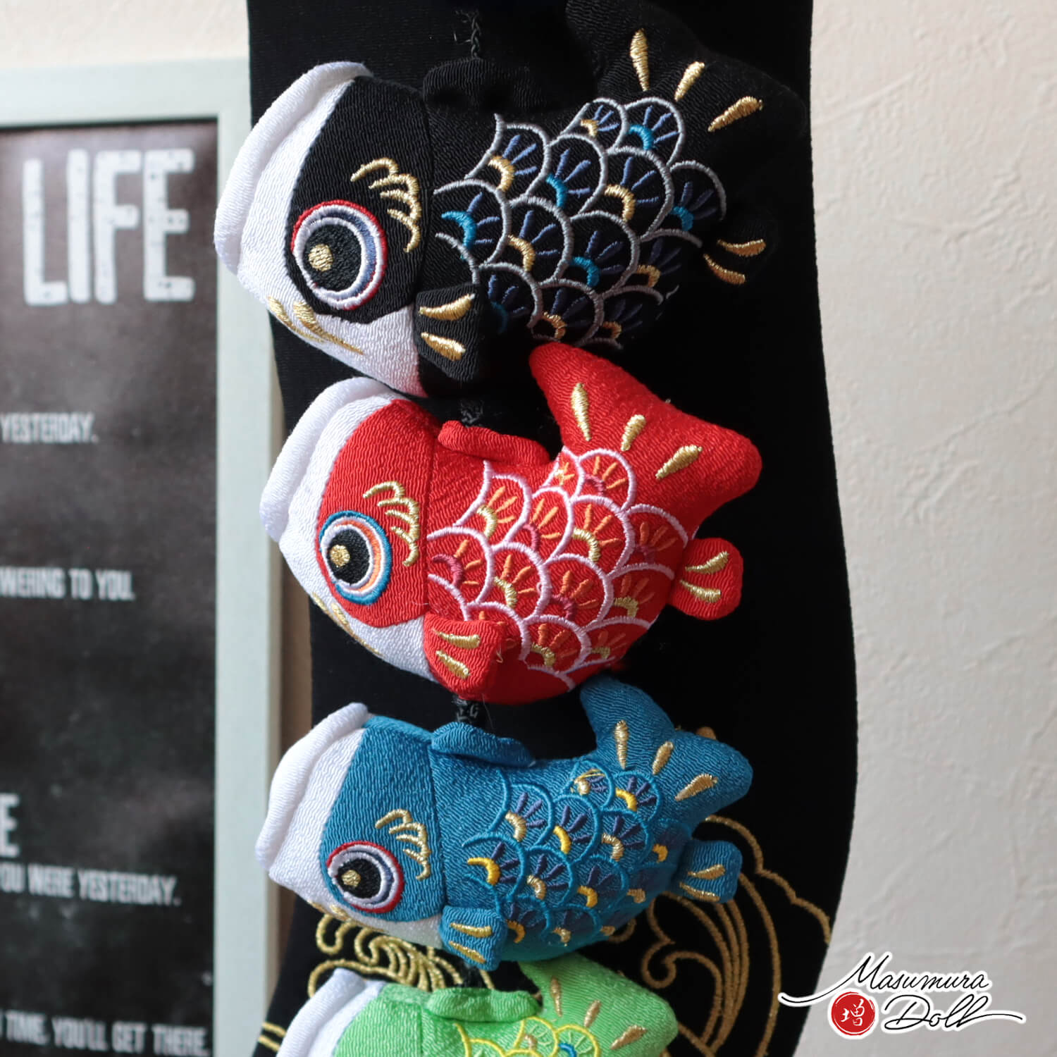 鯉のぼり 室内 滝登り コンパクト 今どき かわいい 選べる 2種類 鯉の滝登り 五匹 ちりめん 室内鯉のぼり 黒色/水色 MMN3368