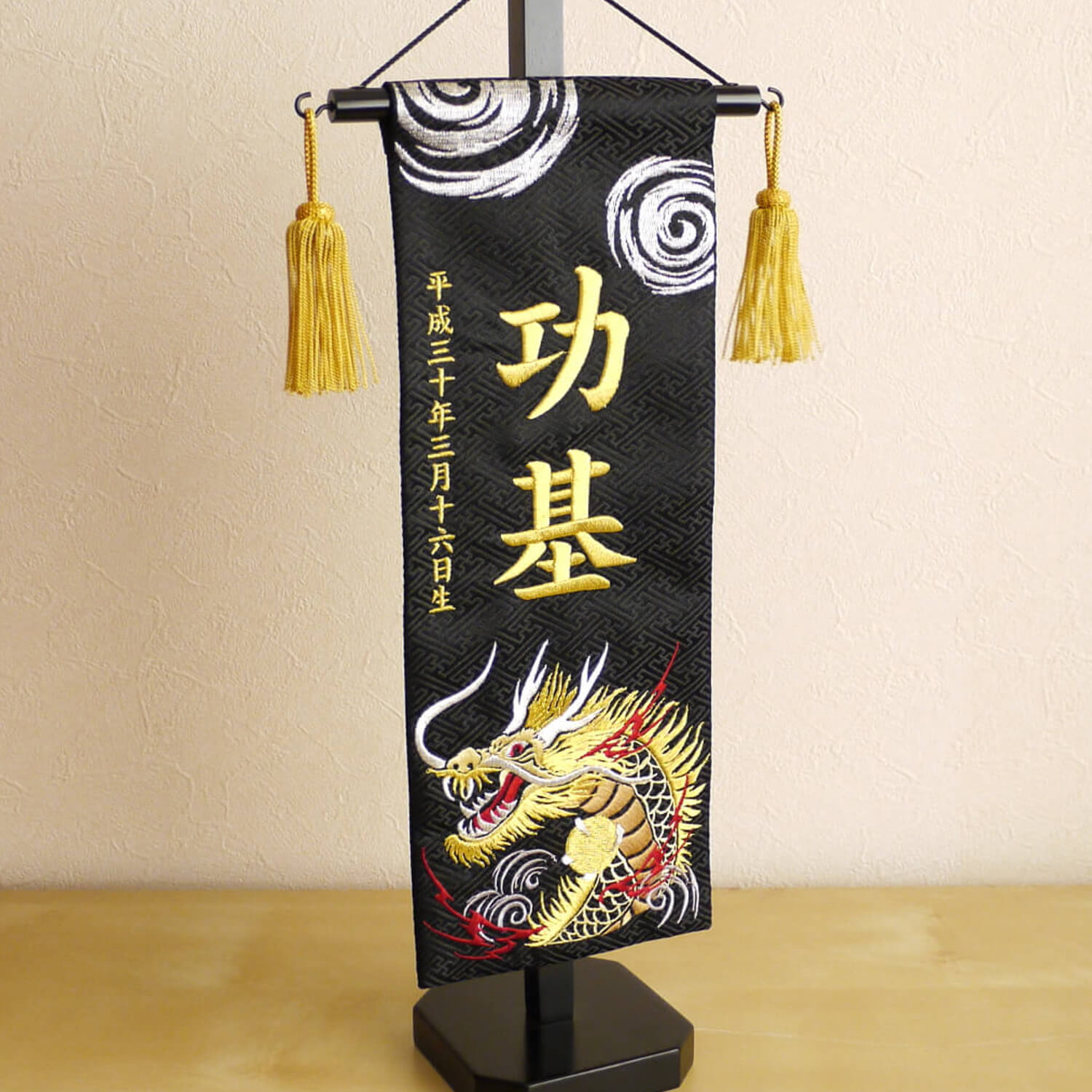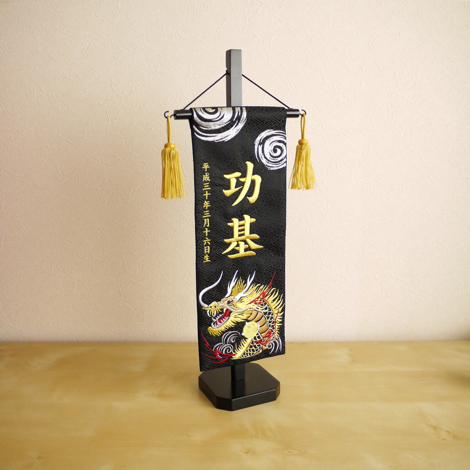 名前旗 男の子 かっこいい 竜 龍 五月人形 名前旗 おしゃれ 刺繍 ジャガード刺繍名前旗 昇り龍 蒼龍 緑龍 龍翔 龍翔 小 黒塗スタンド 増村人形店 ya MMN3492