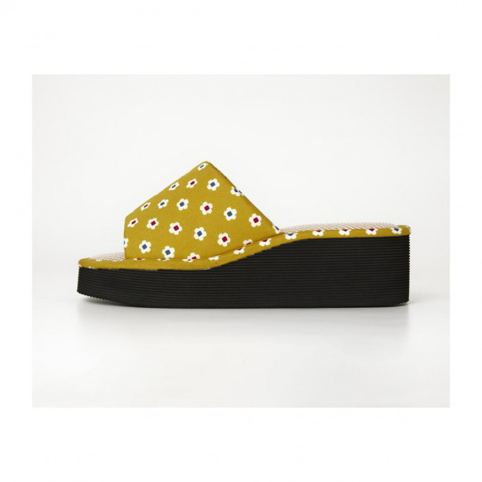 家事らく厚底スリッパ 小花小紋 Sサイズ イエロー XM-993 代引き不可/同梱不可