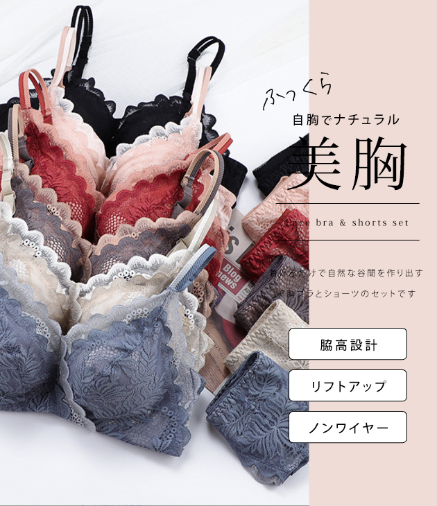 ブラジャーショーツセット レースブラ2点セット ノンワイヤー レディース 春 夏 秋 冬 上下セット パッドあり 20代 30代 40代