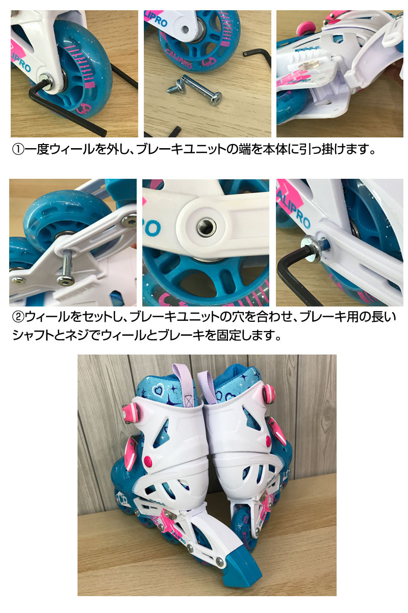 ※「片足用ブレーキ」ご使用の際は、同梱のブレーキ装着用の長いねじに変更してください(専用レンチが2本付属)。