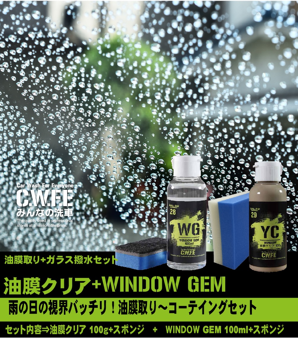ガラスの油膜取り 撥水加工 セット 油膜クリア 100g ウインドウジェム 100ml 撥水 洗車 コート うろこ取り スポンジ 撥水剤 洗車グッズ フロントガラス