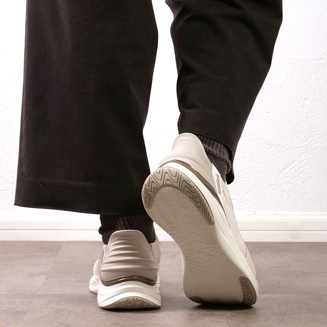 立ったまま、スッと履ける。「楽ふわっ」な履き心地を提供するソフトライドシリーズから、イーズイン(EASEIN)が登場。シュータン一体型のスリッポン構造の履き口、かかと部分が柔らかく、立ったまま手を使わず簡単に足入れが可能です。アッパーにメッシュ素材、エラスティックシューレースデザインを新たに採用。ミッドソールには、フワフワな履き心地を生み出すクッション性の高い機能素材ソフトライド、インソールには快適な履き心地を提供するSoftFoam+を使用しました。軽量で通気性がよく柔らかい履き心地は、フィットネスやランニング、ウォーキングなどに最適。洗練されたデザインで、普段使いのアイテムとしてもオススメの一足です。