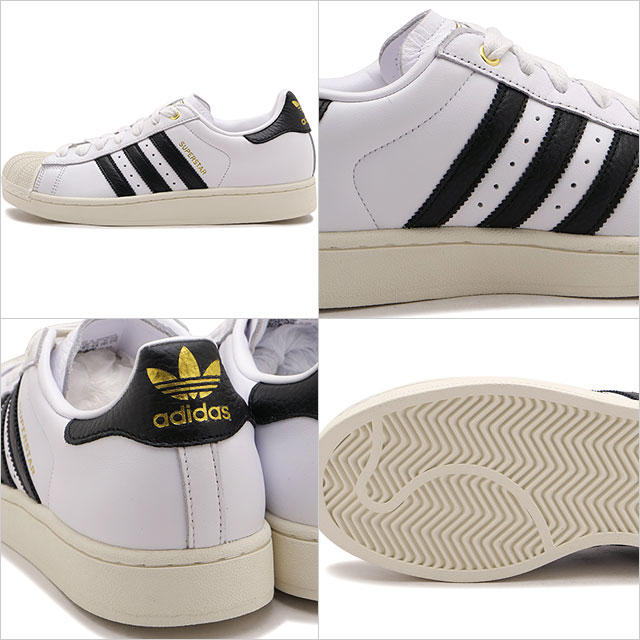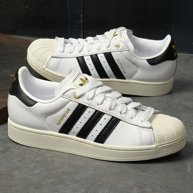 アイコニックなアディダス スーパースターシューズが戻ってきた!滑らかなレザーアッパーとラバーシェルトゥは、バスケットボールコートと街のストリートの記憶を蘇らせます。白黒のシンプルなカラーリングにゴールドのブランドロゴが映える一足。ゴールドメタルのトレフォイルハングタグも目を引きます。バスケをしに行くときや、街に繰り出すときにもぴったりの、汎用性の高いレトロな雰囲気のクラシックスタイルです。