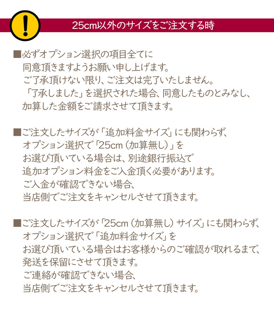 ■ご注文したサイズが「25cm(加算無し)サイズ」にも関わらず、