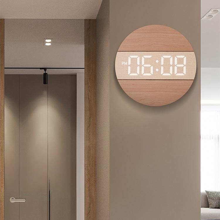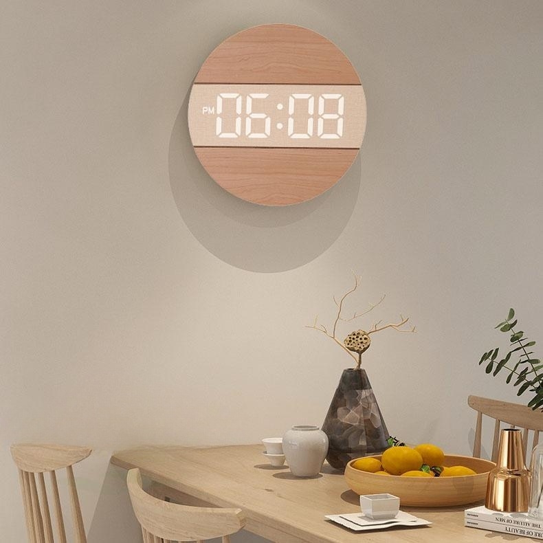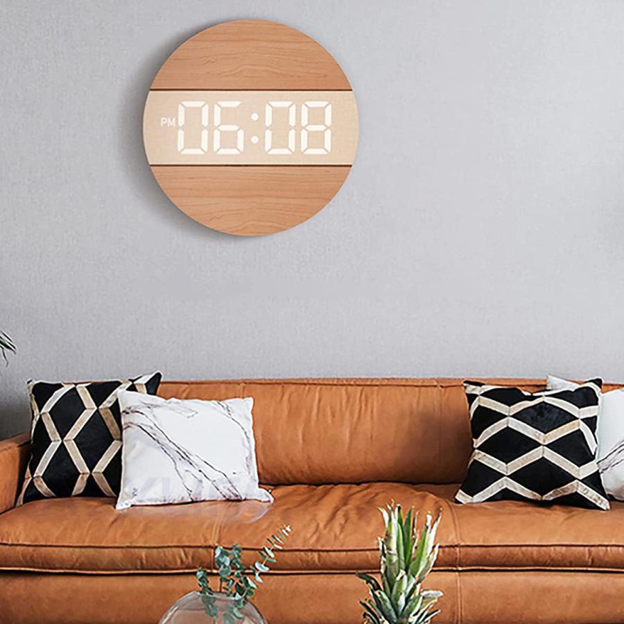 【LED大スクリーン】掛け時計は天然木製デザインを採用し、部屋に自然な雰囲気を作り出し、掛け時計の中にはLED大文字を設けて見え、全方位がはっきり見え、オレンジデジタル設計を採用し、目の疲れを緩和し、遠く時でも見やすい、時計の背面3つのボタンの操作が簡単で、簡単に見たい時に必要な方に最適です。