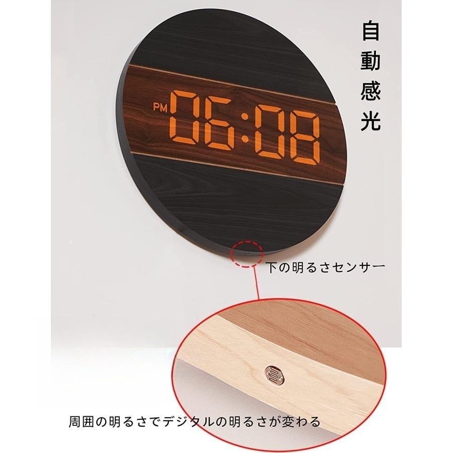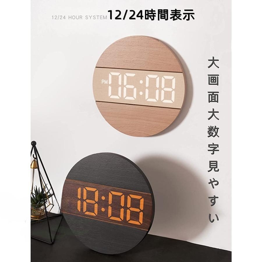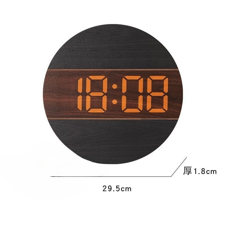 【時計仕様】サイズ:12インチ(直径30CM)*厚さ2CM、重量0.95KG、LED大数字、石英静音ムーブメント、英語取扱説明書、材質:木製+PVC、USB給電、5mコード付き、電源アダプター(別売)は安定出力5V/500MA-1000MA、掛け時計内にはメモリー付き。