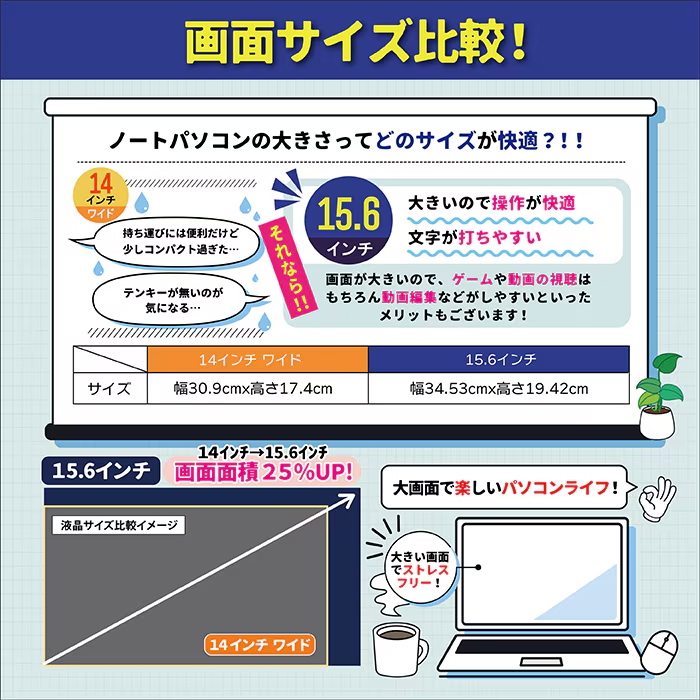 [ディスプレイサイズ] 15.6インチワイド 期間限定 高解像度 1920*1080 フルHD画面へ無償アップグレード